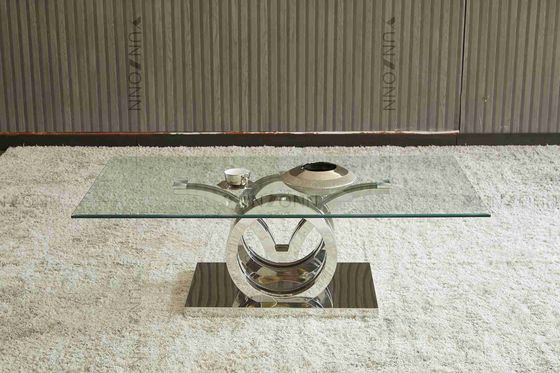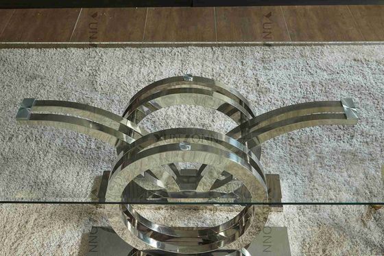 Seagulls ডিজাইন স্টেইনলেস স্টীল বেস গ্লাস শীর্ষ ডাইনিং টেবিল ফ্রেম সিলভার