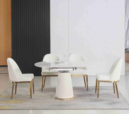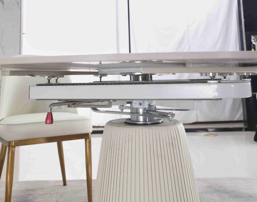 ডাইনিং রুমের জন্য 6 আসন সহ এক্সটেন্ডেবল হোয়াইট কন্ট্রাক্টেড টেলিস্কোপিক ফোল্ডিং রাউন্ড টেবিল