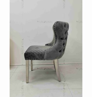 গ্রে পাওয়ার লায়ন বোতাম ভারী ডাইনিং চেয়ার সিলভার স্টেইনলেস স্টীল পা