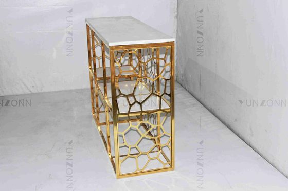 ফাঁপা-আউট প্যাটার্ন খোদাই নকশা স্টোরেজ ক্যাবিনেটের মার্বেল সোনার ধাতুপট্টাবৃত তাক