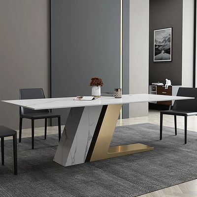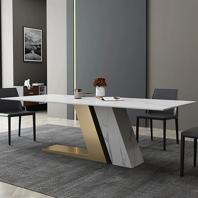 হালকা বিলাসবহুল sintered পাথর ডাইনিং টেবিল এবং চেয়ার সমন্বয় আধুনিক সহজ আয়তক্ষেত্রাকার ছোট পরিবার