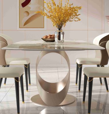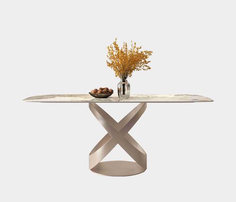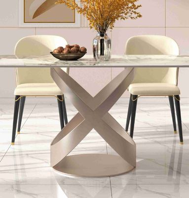 X স্টেইনলেস স্টিল বেস সহ বিলাসবহুল ডাইনিং টেবিল সেট