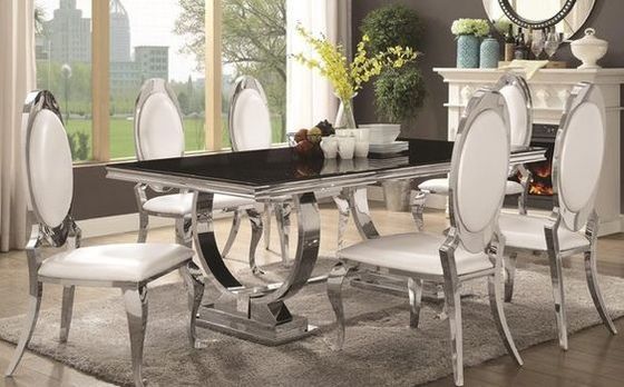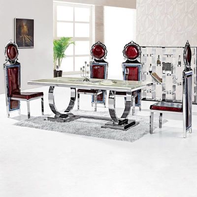 বিলাসবহুল আধুনিক সিলভার 150*90*75 আকারের বাড়ির আসবাবপত্র খাবার ঘরের টেবিল