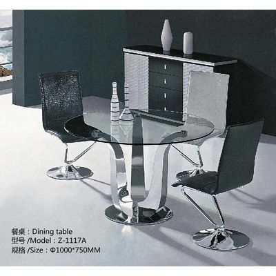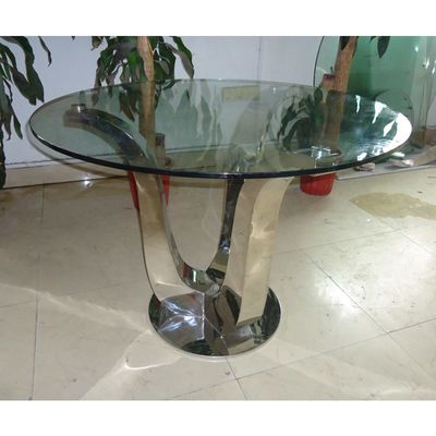 এন্টিক গ্ল্যাম সিলভার ডাইনিং টেবিল সেট D150*H75 গ্লাস টপ টেবিল