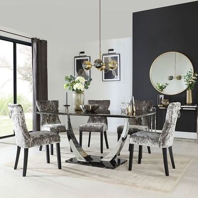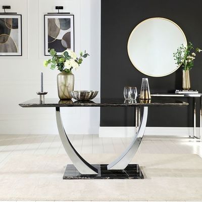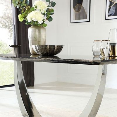 কালো মার্বেল ক্রোম এসএস স্টেইনলেস স্টীল সিলভার ডাইনিং টেবিল 150*90*75 আকার