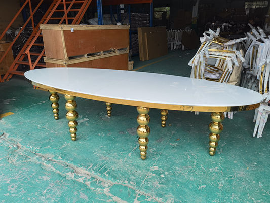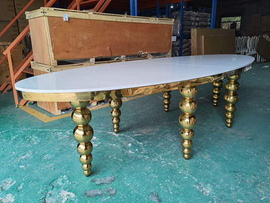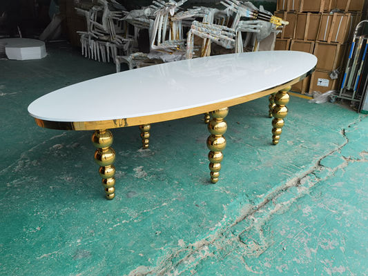ওভাল MDF টেবিল ভোজ টেবিল Ss সোনার বল পা