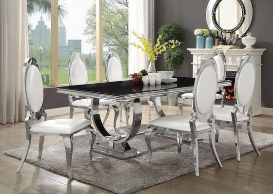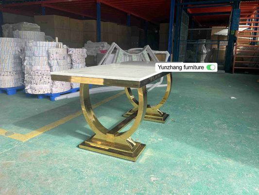 সিলভার গোল্ড স্টেইনলেস স্টীল বেস মার্বেল শীর্ষ সঙ্গে গরম বিক্রয় ডিজাইন ডাইনিং টেবিল
