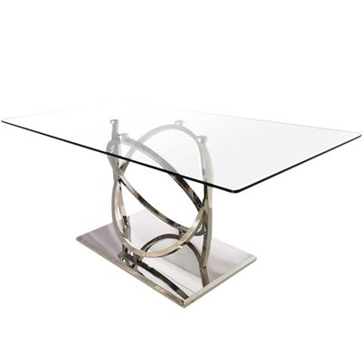 ডাইনিং রুমের জন্য স্বচ্ছ গ্লাস সহ বিলাসবহুল সিলভার মেটাল ডাইনিং টেবিল
