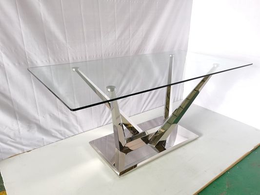 6টি চেয়ার স্টেইনলেস স্টিল মার্বেল স্টোন ডাইনিং টেবিল সহ গ্লাস ডাইনিং টেবিল