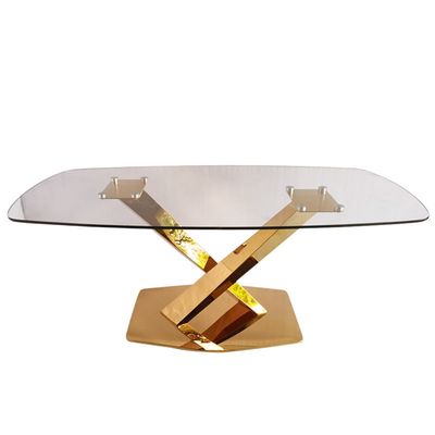 কৃত্রিম মার্বেল শীর্ষ সোনার প্রলেপ 6 আসনের ডাইনিং টেবিল