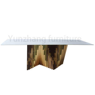মার্বেল টেবিল শীর্ষ সঙ্গে বিলাসবহুল গোল্ড অনিয়মিত ডাইনিং টেবিল মেটাল বেস