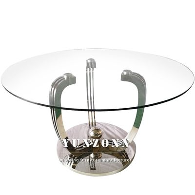 লাক্সারি মডেল গোলাকার ডাইনিং টেবিল স্বচ্ছ 10 মিমি পুরু টেম্পারড গ্লাস টপ গোল্ড বেস সহ 0