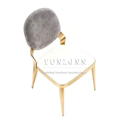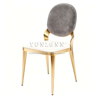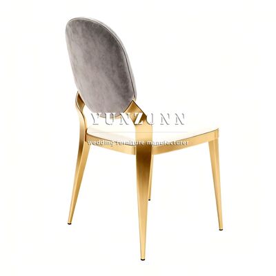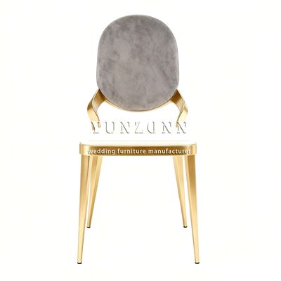 পাইকারি বিলাসবহুল ধাতু এবং ধূসর কাপড় বৃত্তাকার পিছনে স্ট্যাকিং সোনার হোটেল ভোজ বিবাহের ইভেন্ট চেয়ার বিক্রয় |