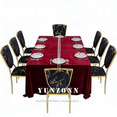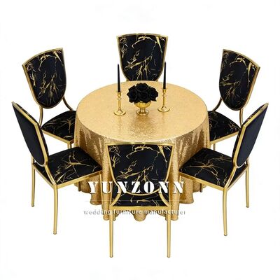 | পণ্যের নাম: | সোনার থিমের বিবাহ এবং হোটেল ব্ল্যাক ভেলভেট কুশনযুক্ত মেটাল স্ট্যাকযোগ্য ভোজ চেয়ার |