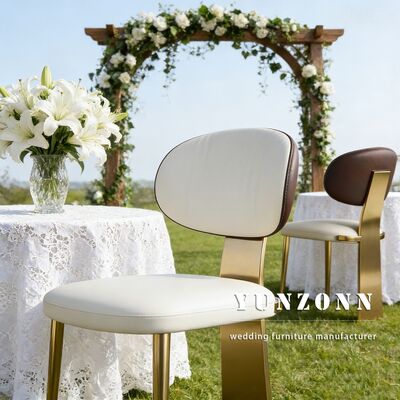 আধুনিক বিলাসবহুল ইভেন্ট চেয়ার মিনিমালিস্ট গোল্ডেন স্টেইনলেস স্টিল ফ্রেম পিইউ লেদার ওয়েডিং চেয়ার ইভেন্টের জন্য |
