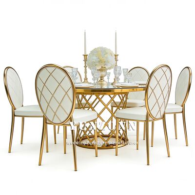 প্রশ্ন 3: আপনার পণ্যগুলির উপাদান কী? A3: টেবিল এবং চেয়ারের স্টেইনলেস স্টিলের ফ্রেম,টেবিলের উপর শক্ত গ্লাস; মার্বেল বা কাঠ। চেয়ারের কুশনগুলি উচ্চ ঘনত্বের স্পঞ্জ এবং উচ্চ মানের চামড়া বা কাপড়ের তৈরি।