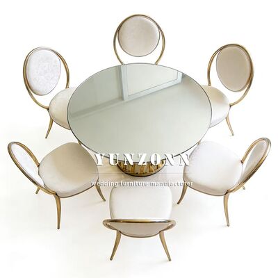 প্রশ্ন 3: আপনার পণ্যগুলির উপাদান কী? A3: টেবিল এবং চেয়ারের স্টেইনলেস স্টিলের ফ্রেম,টেবিলের উপর শক্ত গ্লাস; মার্বেল বা কাঠ। চেয়ারের কুশনগুলি উচ্চ ঘনত্বের স্পঞ্জ এবং উচ্চ মানের চামড়া বা কাপড়ের তৈরি।