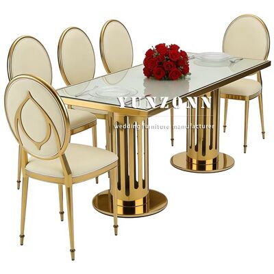 প্রশ্ন 3: আপনার পণ্যগুলির উপাদান কী? A3: টেবিল এবং চেয়ারের স্টেইনলেস স্টিলের ফ্রেম,টেবিলের উপর শক্ত গ্লাস; মার্বেল বা কাঠ। চেয়ারের কুশনগুলি উচ্চ ঘনত্বের স্পঞ্জ এবং উচ্চ মানের চামড়া বা কাপড়ের তৈরি।