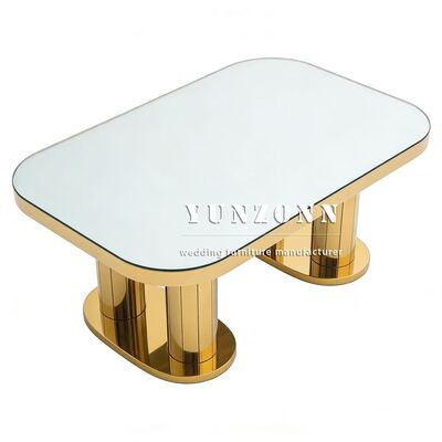 | পণ্যের নাম: | পাইকারি আয়তক্ষেত্রাকার ভোজের আয়না কাঁচের শীর্ষ স্টেইনলেস স্টিল টেবিল গোল্ড ওয়েডিং ইভেন্টস হোটেল ডাইনিং ফার্নিচার |