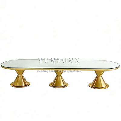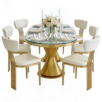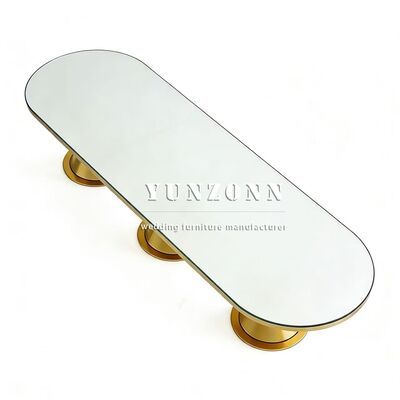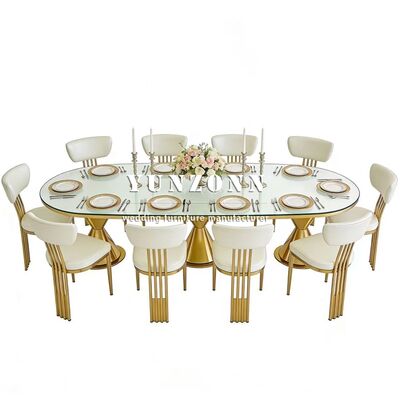 | Product Name: | Luxurious New Arrival Modern Gold Stainless Steel Legs Oval Outdoor Dining Wedding Table with Tempered Glass Top Hotel Furniture |