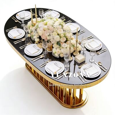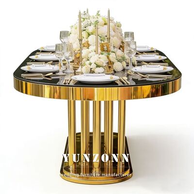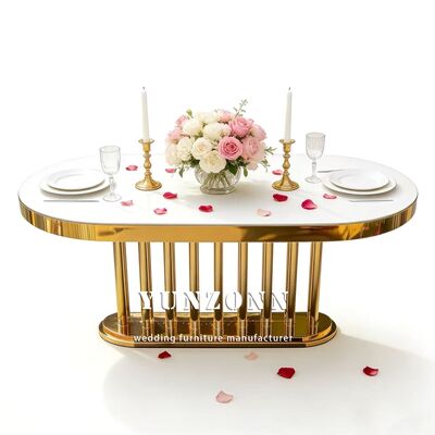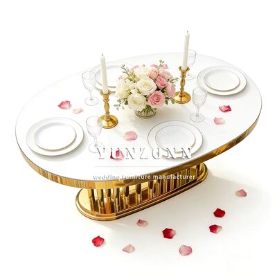 | পণ্যের নাম: | বিবাহের আসবাবপত্র পাইকারি সোনালী ডিম্বাকৃতির স্টেইনলেস স্টিলের ফ্রেম সাদা আয়না কাঁচের টপ লম্বা ডাইনিং হোটেল টেবিল বিবাহের জন্য |