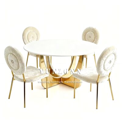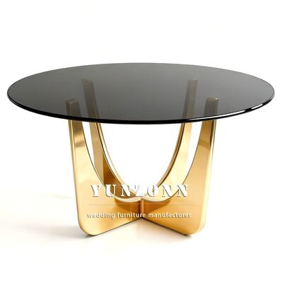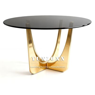 | পণ্যের নামঃ | বিলাসবহুল গোলাকার স্টেইনলেস স্টীল বিবাহের টেবিল ইভেন্ট ডিজাইন গোল্ড গ্লাস শীর্ষ ডাইনিং টেবিল |