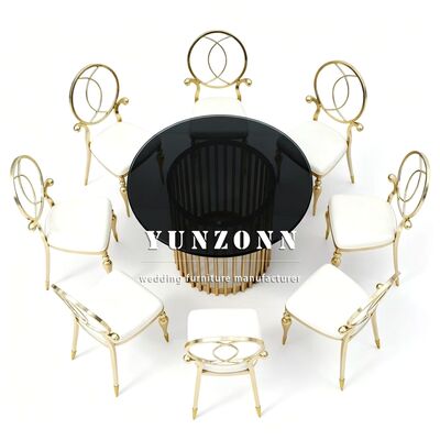 প্রশ্ন 3: আপনার পণ্যগুলির উপাদান কী? A3: টেবিল এবং চেয়ারের স্টেইনলেস স্টিলের ফ্রেম,টেবিলের উপর শক্ত গ্লাস; মার্বেল বা কাঠ। চেয়ারের কুশনগুলি উচ্চ ঘনত্বের স্পঞ্জ এবং উচ্চ মানের চামড়া বা কাপড়ের তৈরি।