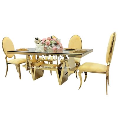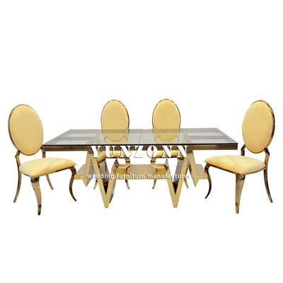 | পণ্যের নামঃ | পাইকারি Weeding আসবাবপত্র টেবিল আধুনিক বিলাসিতা স্বর্ণ স্টেইনলেস স্টীল গ্লাস ডাইনিং টেবিল 6 চেয়ার সেট |