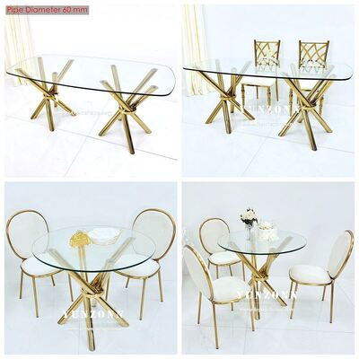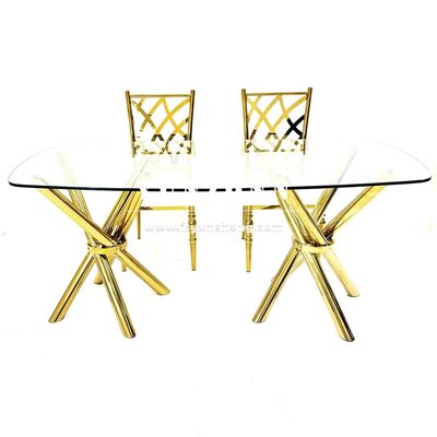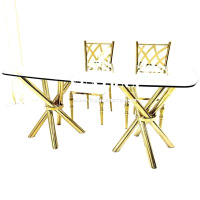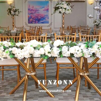 | পণ্যের নাম: | হালকা ও স্থিতিশীল সস্তা সোনালী স্টেইনলেস স্টিল ক্রস-লেগ স্বচ্ছ কাঁচের ইভেন্ট ওয়েডিং ব্যানকুইট টেবিল |