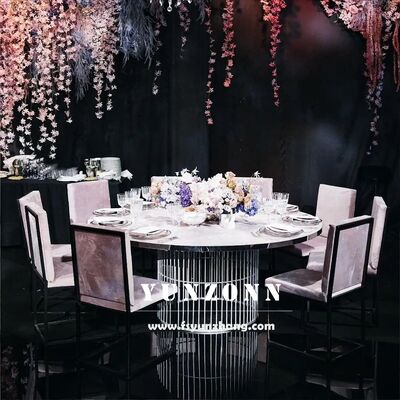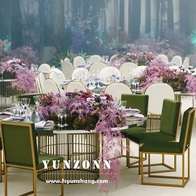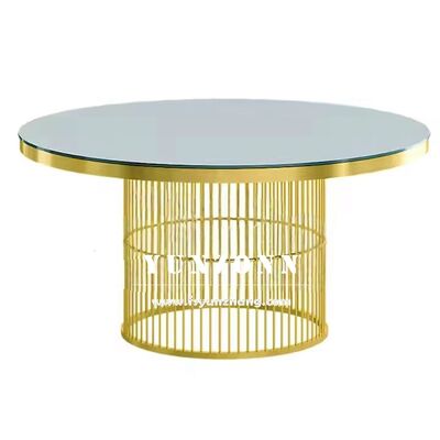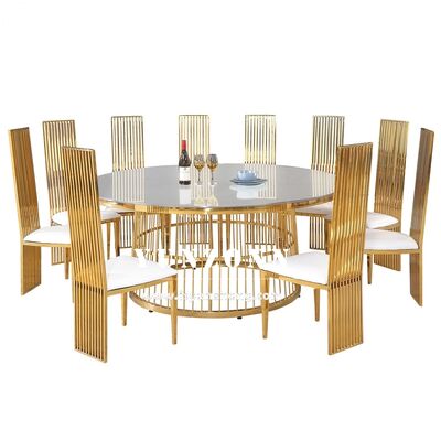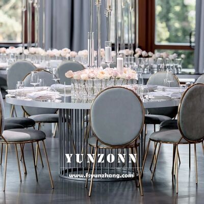গোল্ড স্টেইনলেস স্টীল ডাইনিং গোল টেবিল ইভেন্ট ভাড়া নকশা টেবিল এবং চেয়ার