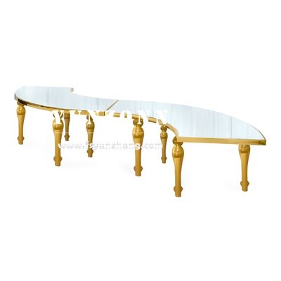 | পণ্যের নামঃ | গোল্ড/হোয়াইট/ব্ল্যাক ফ্রেম স্টেইনলেস স্টীল অর্ধ বৃত্ত Serpentine বিবাহের ভোজের কেন্দ্র ডাইনিং টেবিল লিভিং রুম হোটেল আসবাবপত্র | ||