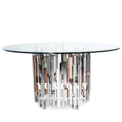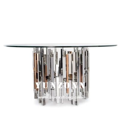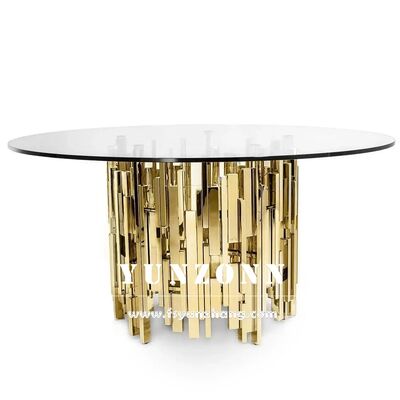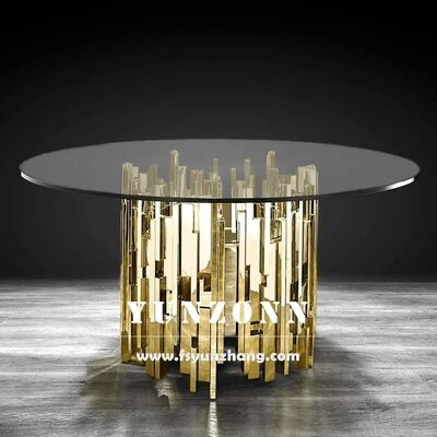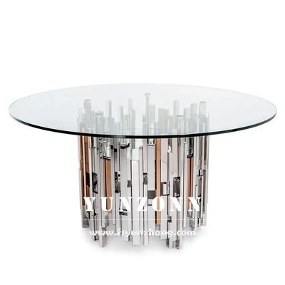 দুবাই সংকলন স্টেইনলেস স্টীল বিয়ের কেক টেবিল গ্লাস টপ সহ মার্জিত হোটেল আসবাবপত্র সজ্জা