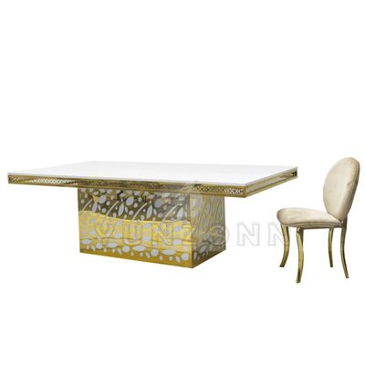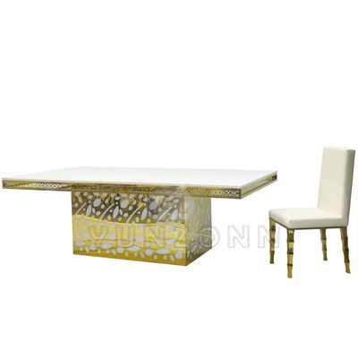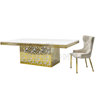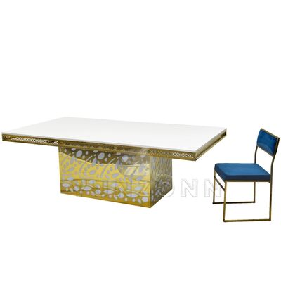 বিলাসবহুল হোটেল স্টেইনলেস স্টীল ক্রিস্টাল দুল সোনার গ্লাস বিবাহ এবং ইভেন্টের জন্য ডাইনিং টেবিল ভোজের জন্য রেস্টুরেন্ট এবং পার্টি |