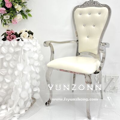 রয়্যাল স্টাইল গোল্ডেন গোল্ড স্টেইনলেস স্টিল ডাইনিং চেয়ার নতুন ডিজাইন ক্রিস্টাল বাটন আর্মরেস্ট রেস্টুরেন্ট ওয়েডিং হোটেল ব্যবহার