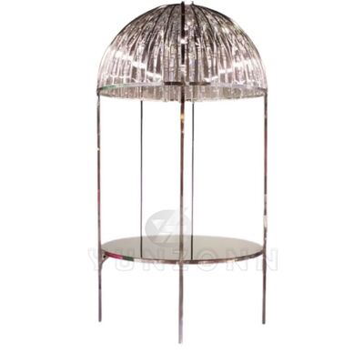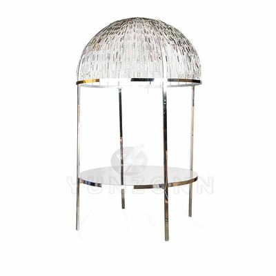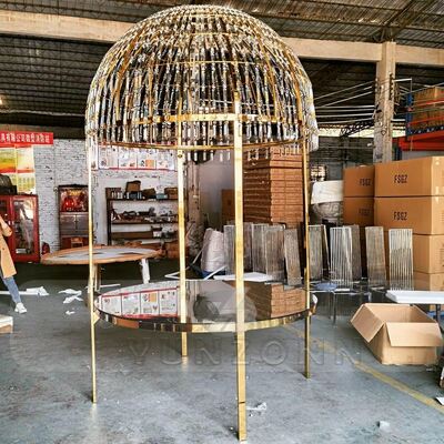 | পণ্যের নামঃ | আধুনিক বিলাসবহুল ক্রিস্টাল ডোম ডাইনিং টেবিল স্টেইনলেস স্টীল ফ্রেম ধাতু হোটেল বিবাহ আউটডোর রেস্টুরেন্ট ভোজসভা |