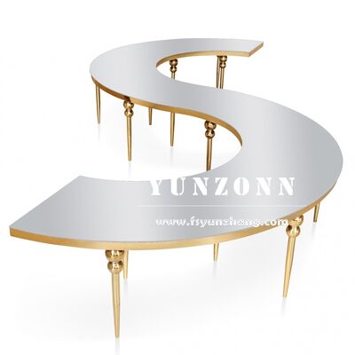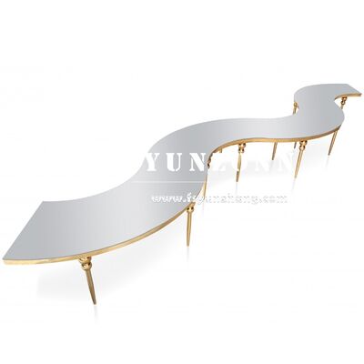 | পণ্যের নামঃ | শীর্ষ মানের হোটেল বিবাহ অনুষ্ঠান ক্রিস্টাল আসবাবপত্র সঙ্গে ভোজের টেবিল Serpentine S আকৃতির বিবাহের টেবিল |