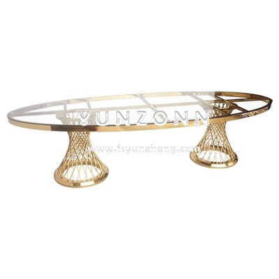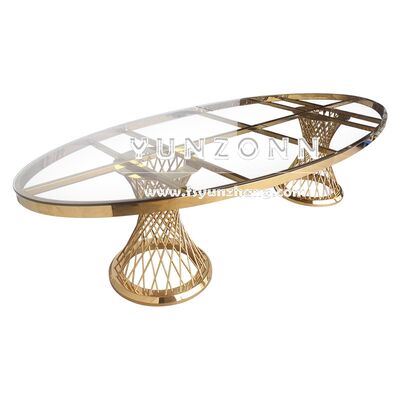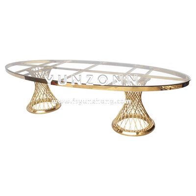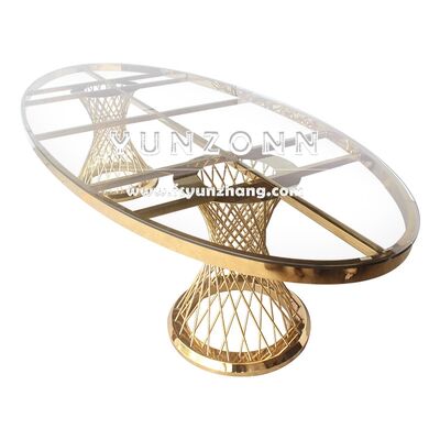 | পণ্যের নামঃ | রেস্টুরেন্ট ডাইনিং টেবিলের জন্য আধুনিক স্টেইনলেস স্টীল কেন্দ্রের টুকরা আউটডোর বিবাহের হোটেলের জন্য বিলাসবহুল শৈলীর সাথে ওভাল গ্লাস ডিজাইন |