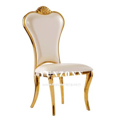 | পণ্যের নামঃ | বিলাসবহুল রয়্যাল ক্রাউন হেড বিয়ের চেয়ার ইভেন্ট ভেন্যু সাদা এবং সোনার ডাইনিং চেয়ার |