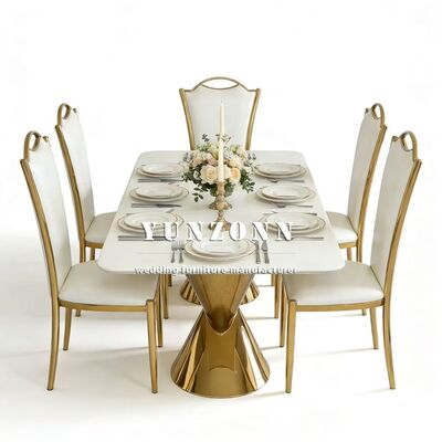 প্রশ্ন 3: আপনার পণ্যগুলির উপাদান কী? A3: টেবিল এবং চেয়ারের স্টেইনলেস স্টিলের ফ্রেম,টেবিলের উপর শক্ত গ্লাস; মার্বেল বা কাঠ। চেয়ারের কুশনগুলি উচ্চ ঘনত্বের স্পঞ্জ এবং উচ্চ মানের চামড়া বা কাপড়ের তৈরি।