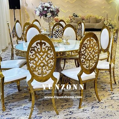 | পণ্যের নাম: | লাক্সারি রয়্যাল এবং মডার্ন গোল্ড হোটেল চেয়ার বিশেষ খোদাই করা প্যাটার্ন স্টেইনলেস স্টিল উপাদান সহ বিবাহের ডাইনিং চেয়ারের জন্য |